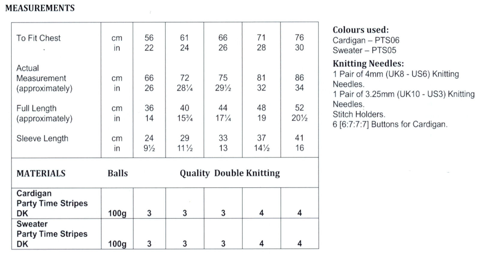 This easy knit pattern gives you measurements to create the garment to fit a 22" - 30" (56cm - 76cm) chest approximately.