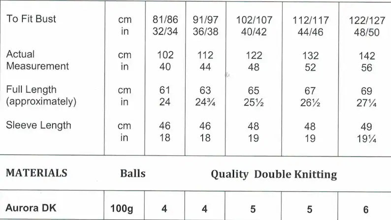 This intermediate knit pattern gives you measurements to create the garment to fit a 32/34" - 48/50" (81/86cm - 122/127cm) bust approximately.