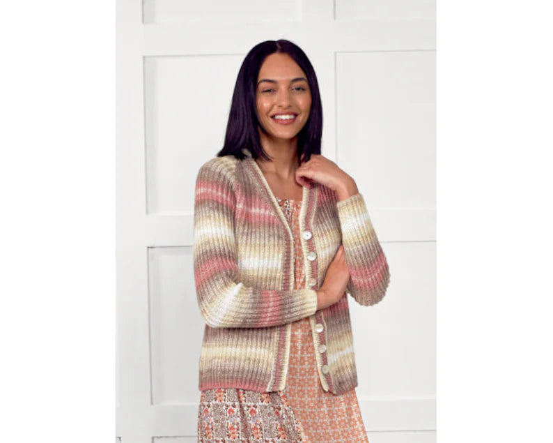 This double-knit knitting pattern leaflet JB863 by James Brett will instruct you on how to knit a lady's cardigan
