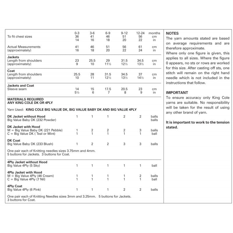 King Cole 3368 Jackets and Coats Double Knit and 4Ply