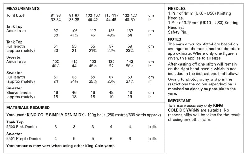 King Cole 6156 Ladies Sweater and Slipover Double Knit