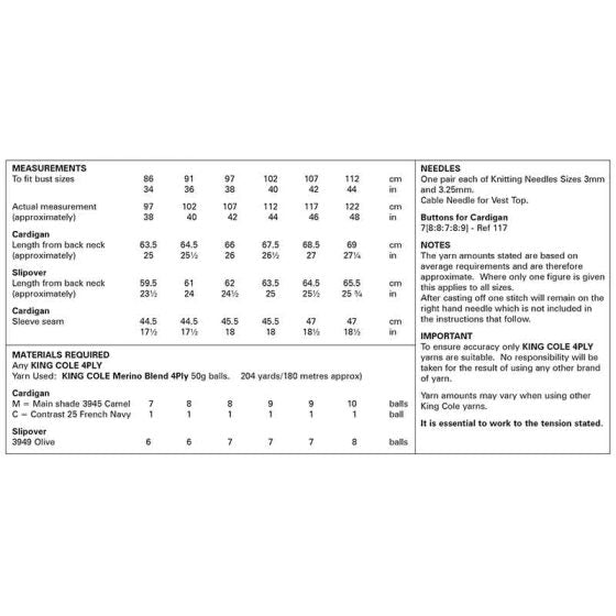 King Cole 6294 Cardigan and Slipover - 4ply
