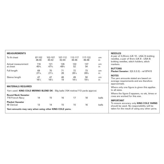 King Cole 6373 Knitting Pattern