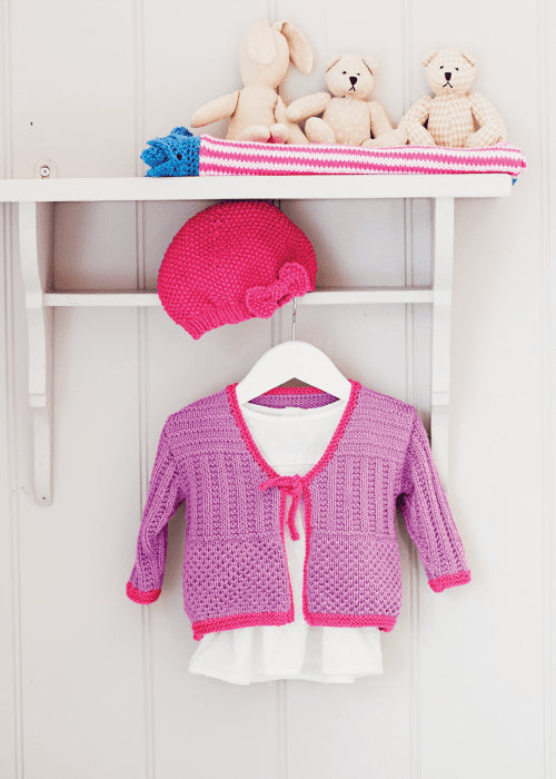 The wonderfully creative Sue Batley-Kyle has a bounty of designs for boys and girls using colourful stripes, playful motifs and simple textures including cables and lacy effects.