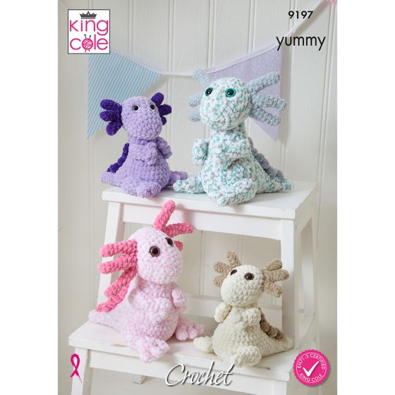 King Cole Crochet Pattern 9197 Toy Axolotls - Chunky
