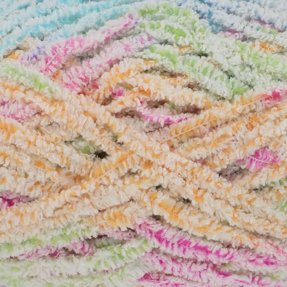 Fruitilicious, a delightfully soft, fluffy yarn perfect for creating adorable patterns for babies and children! Each 100g ball of this multicoloured pastel wonder is crafted from 100% polyester, ensuring a gentle touch against delicate skin.