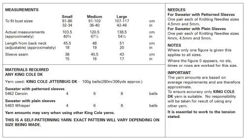 King Cole Knitting Pattern 6143 Double knitting
