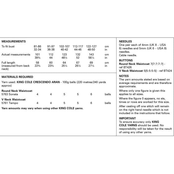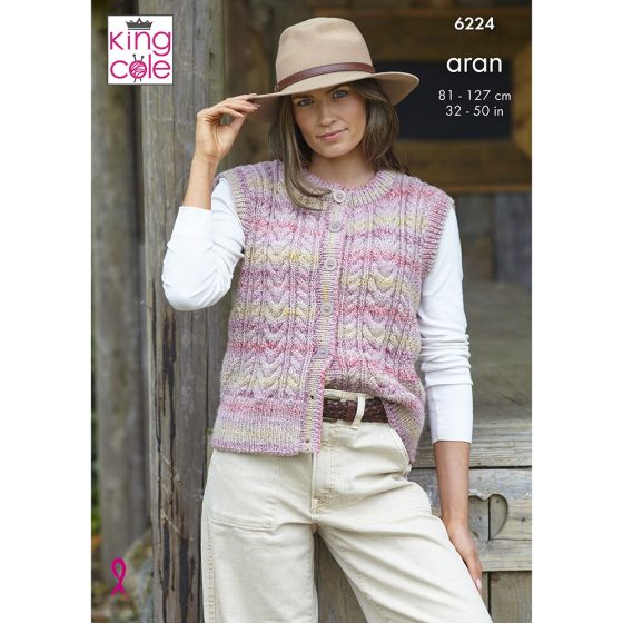 King Cole Knitting Pattern 6224 Ladies Round Neck and V Neck Waistcoat - Aran