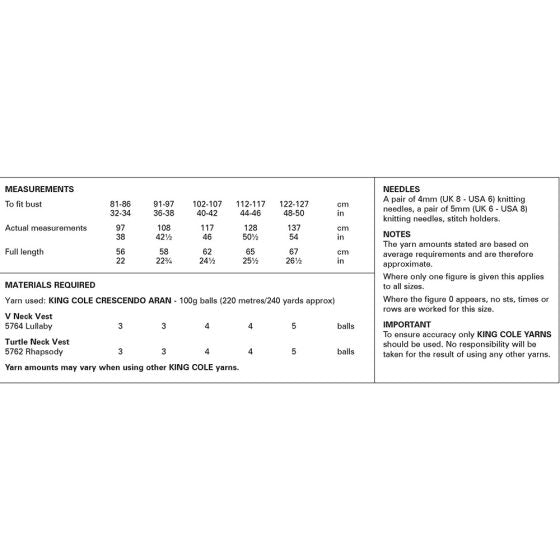 King Cole Knitting Pattern 6226 Ladies Vests - Aran
