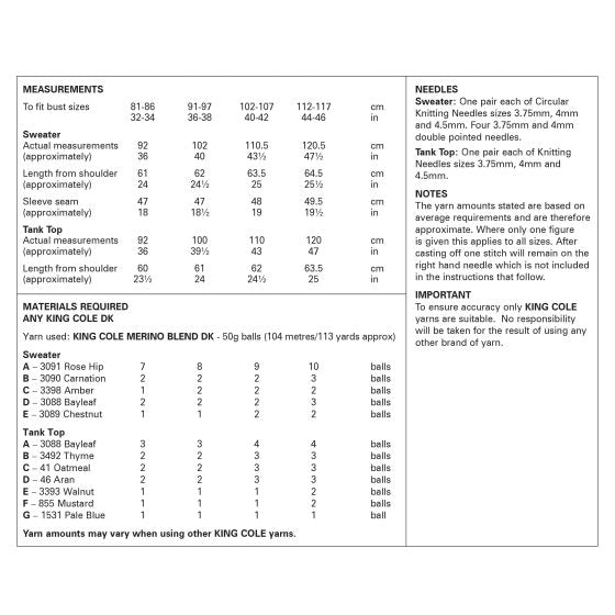 King Cole Knitting Pattern 6364 Fairisle Sweater and Tank Top knitted DK