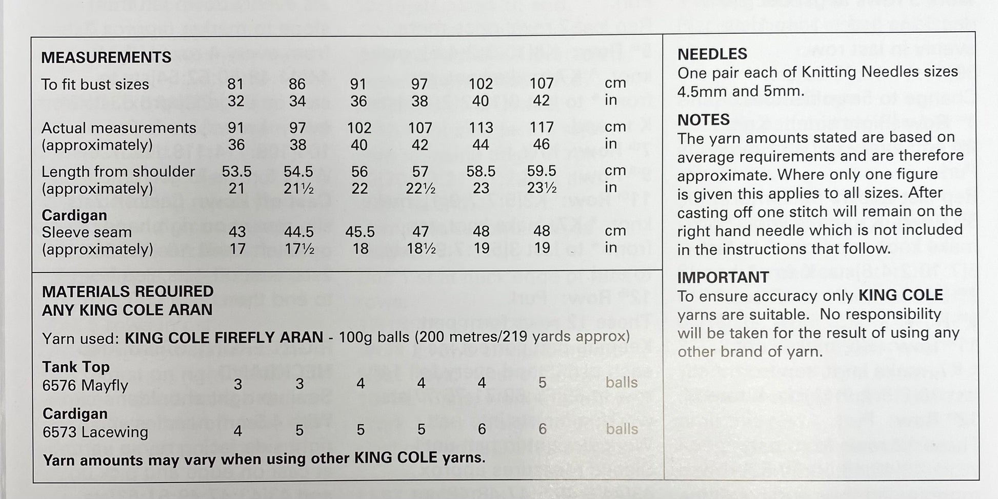 King Cole Knitting Pattern 6445 Firefly Aran - Tank Top and Cardigan