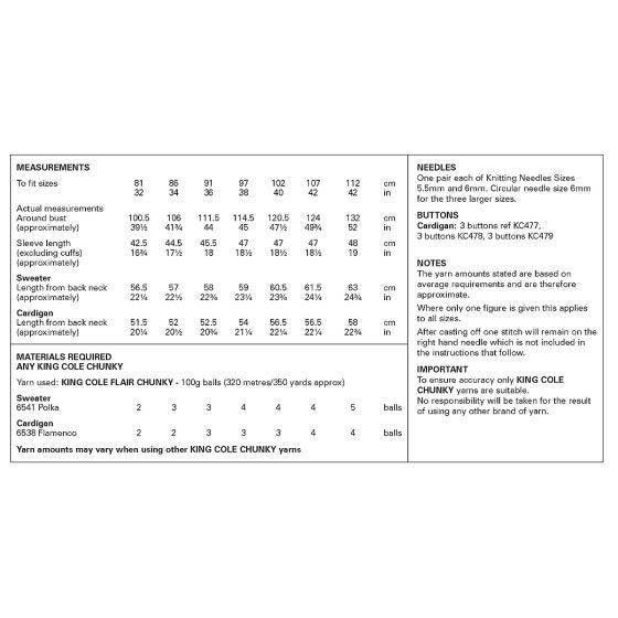 King Cole Knitting Pattern 6480 Chunky