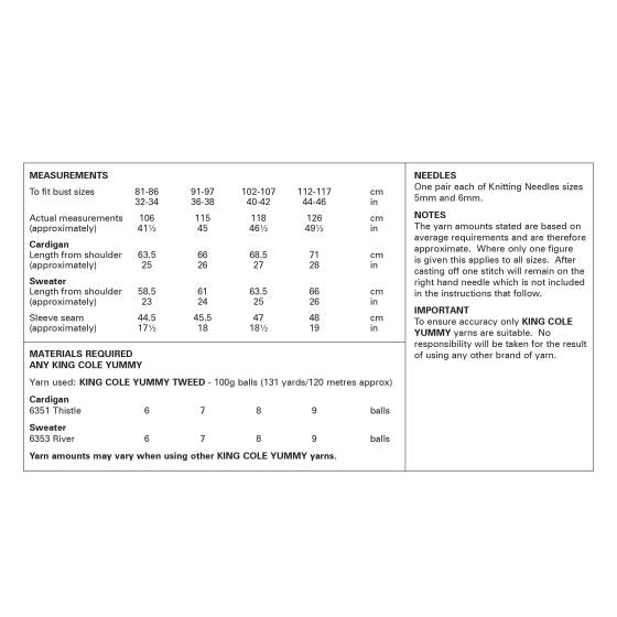 King Cole Knitting Pattern Cardigan and Sweater 6315