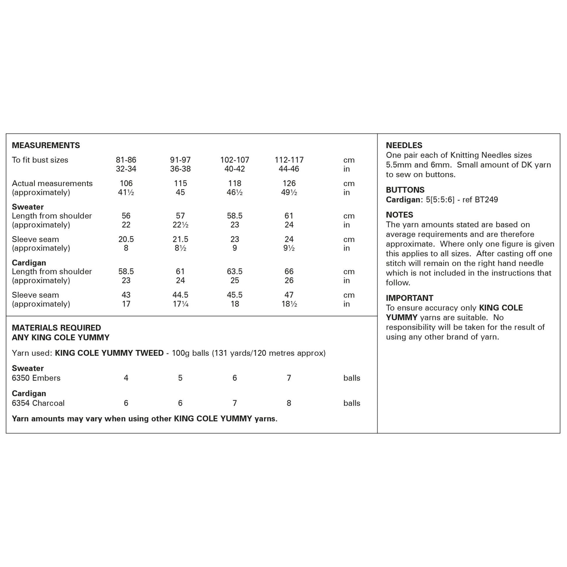 King Cole Knitting Pattern Sweater and Cardigan 6316