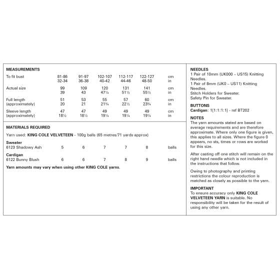 King Cole Knitting Pattern Sweater and Cardigan 6323
