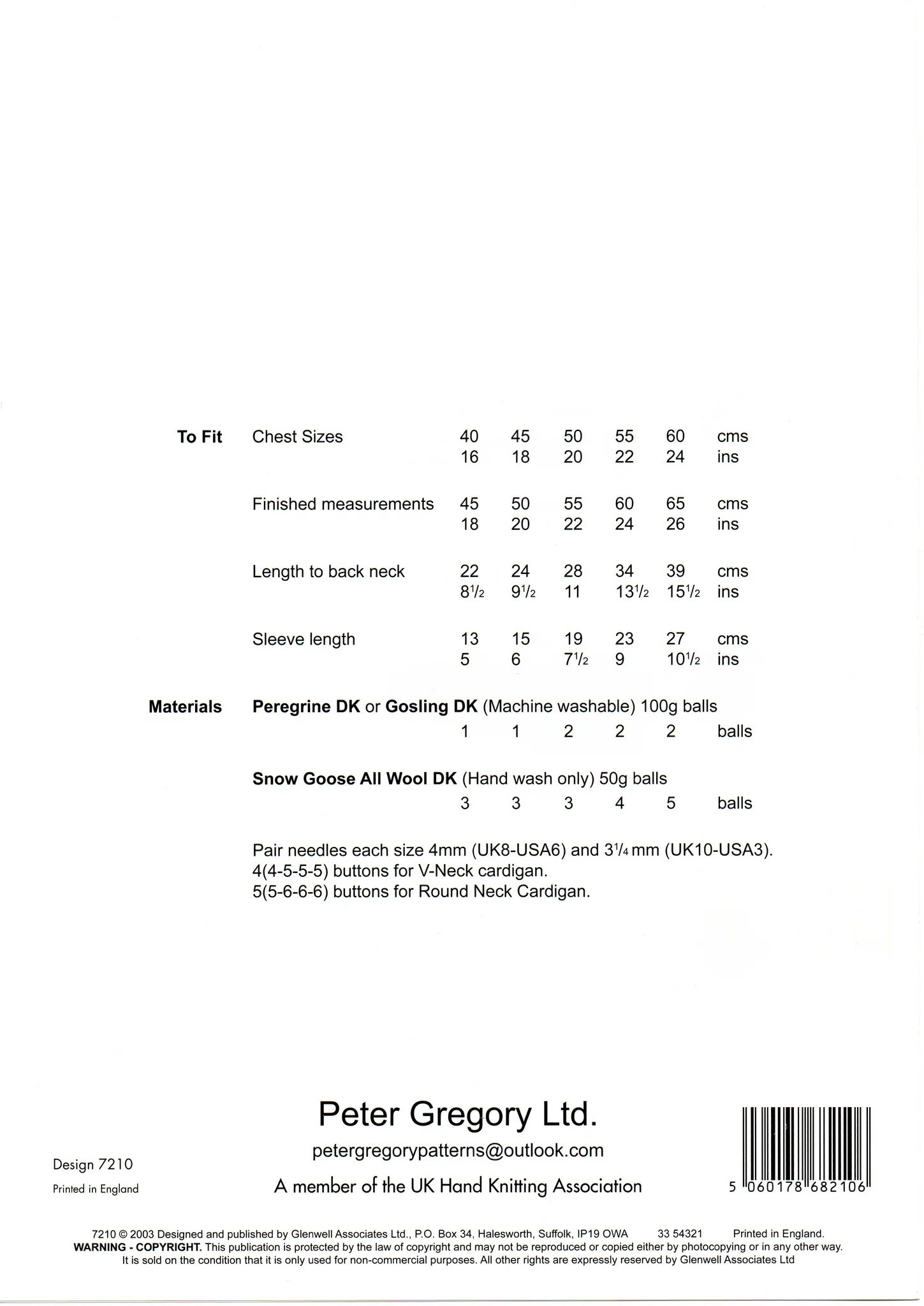 Peter Gregory Knitting Pattern 7210 Double Knitting
