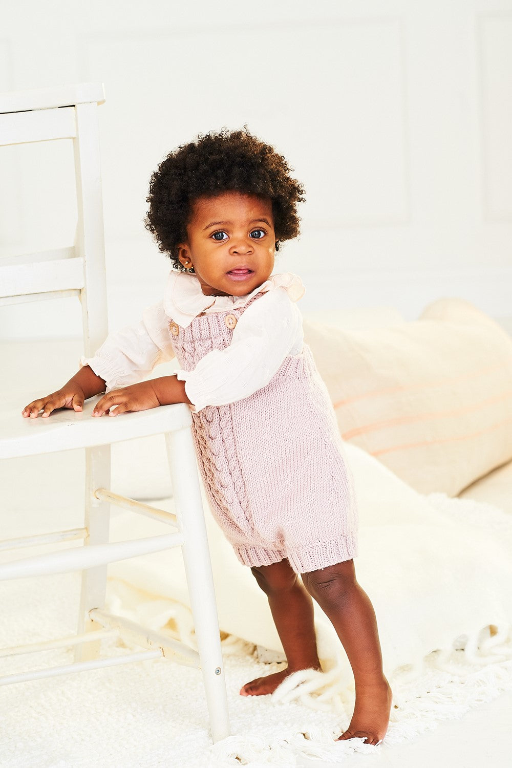 You will need: pair of 3.25mm (UK 10 - USA 3) knitting needles, a pair of 4mm (UK 8 - USA 6) knitting needles, cable needle, stitch holders, stitch markers. For Dungarees: 2 buttons, 2cm, ¾in. For Cardigan: 6 buttons, 2cm, ¾in.