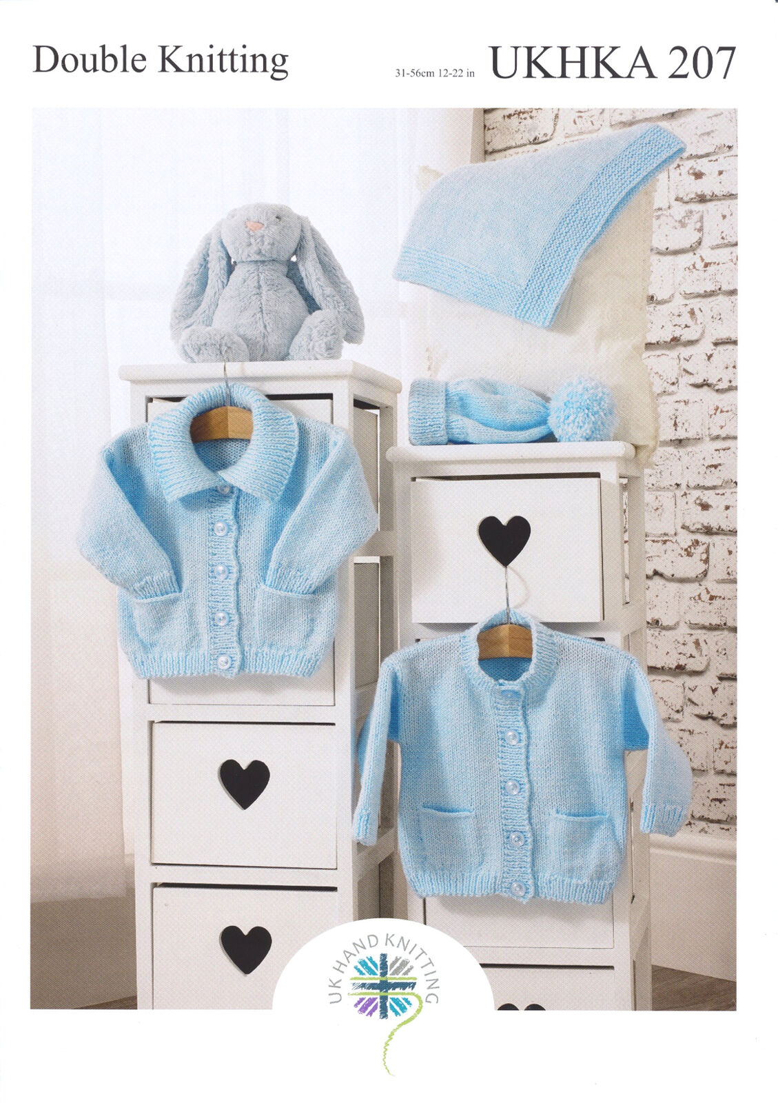 UKHKA 207 Cardigans, Blanket and Hat Double Knitting