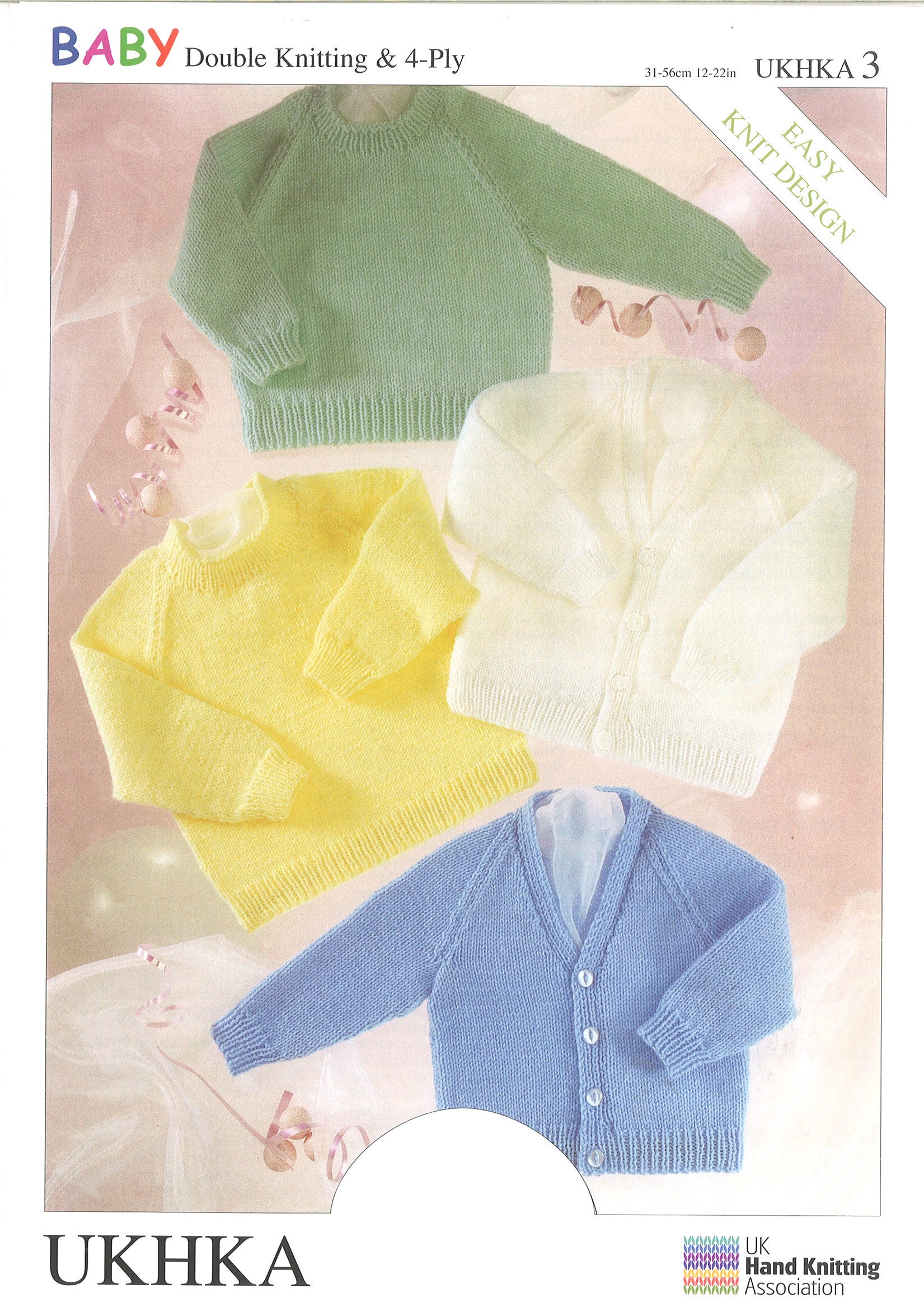 UKHKA 3 Baby Sweater and Cardigan - 12"-22"Double Knit and 4Ply