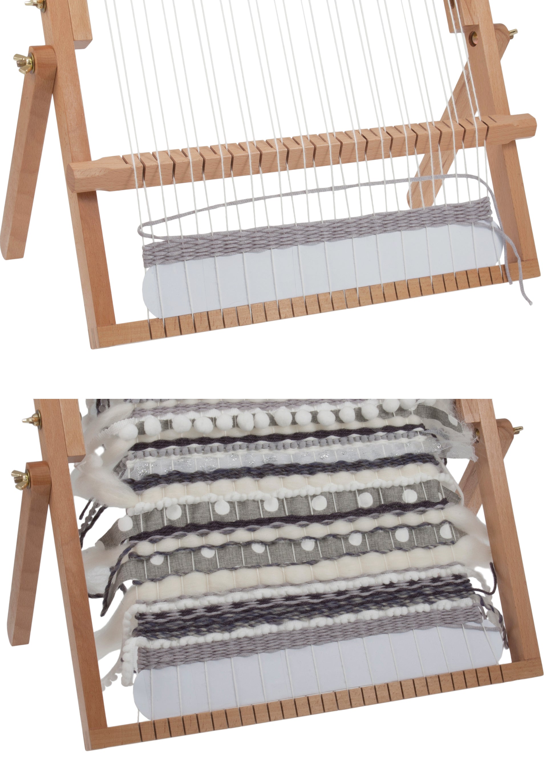 This premium quality weaving loom is made from durable and long lasting beech wood. Height can extend from 40cm to 61cm, making it ideal for a variety of weaving projects. Includes: weaving loom, beech warp separator and full instructions to get even those just starting out to get weaving.