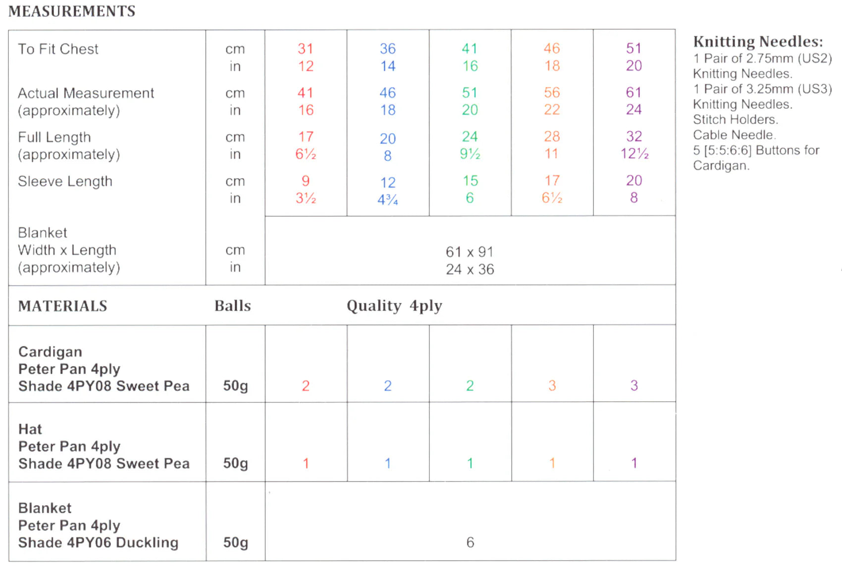 This knitting pattern is suitable for use with most 4ply yarns however, tensions may vary and we recommend you knit a tension square before knitting the whole garment.