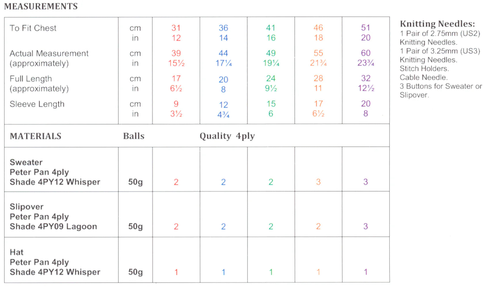 This knitting pattern is suitable for use with most 4ply yarns however, tensions may vary and we recommend you knit a tension square before knitting the whole garment.